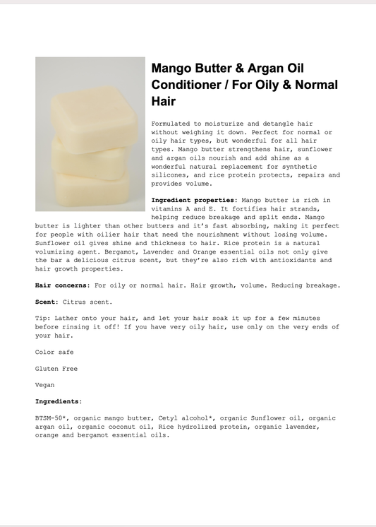 Unpackaged Argan Oil Solid Conditioner Bar -Normal/Oily Hair